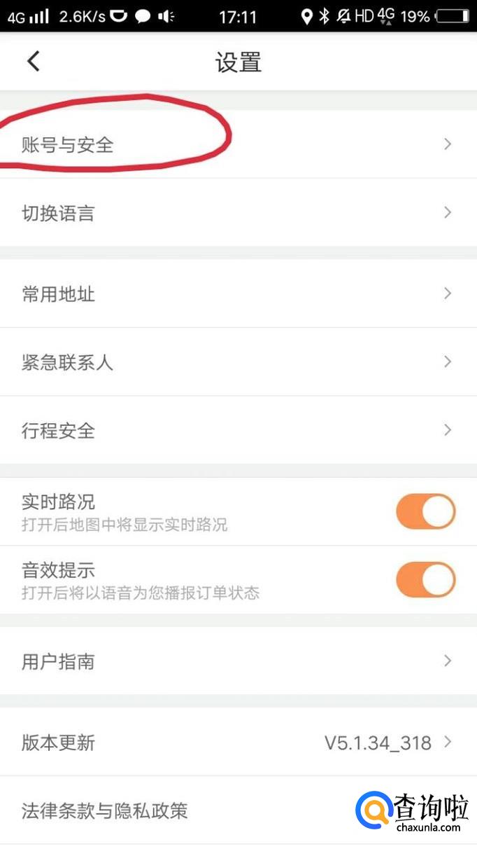 找到帐号与安全,点击进去。
