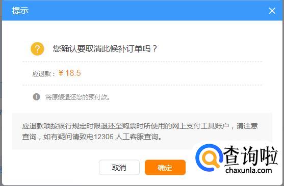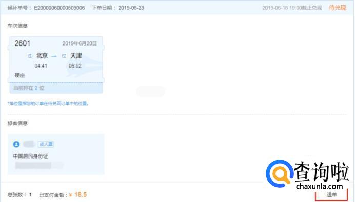 如果想取消候补订票,在候补订单中选择“退单”,即可取消。