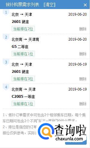 点击“候补”,会出现候补购票需求列表,同时显示候补排位。
