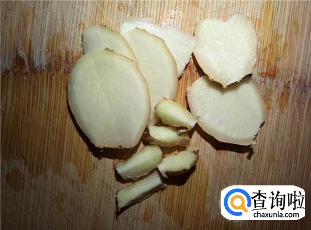 准备好所有材料:筒骨一根、淮山一根、姜适量、蒜头两瓣。