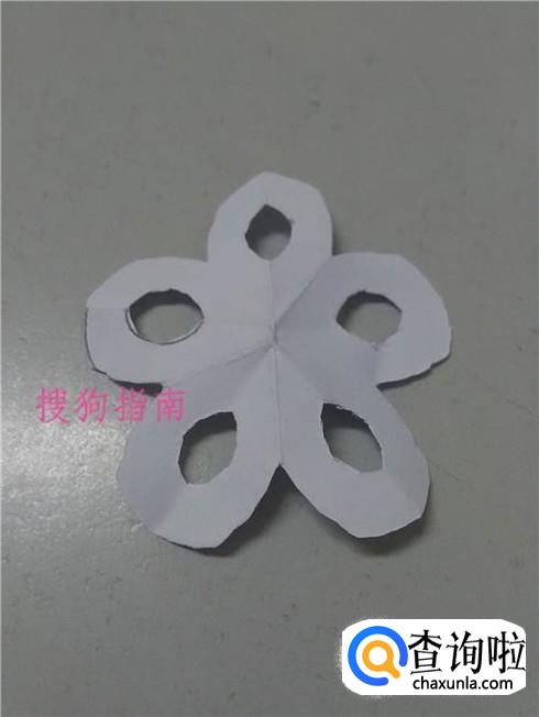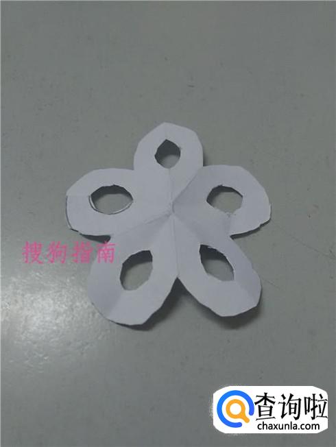 把纸打开,五个花瓣的剪纸就做好了。