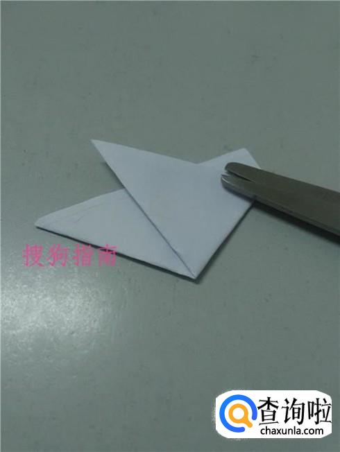 将正方形的一个角向上对折,折成三角形。