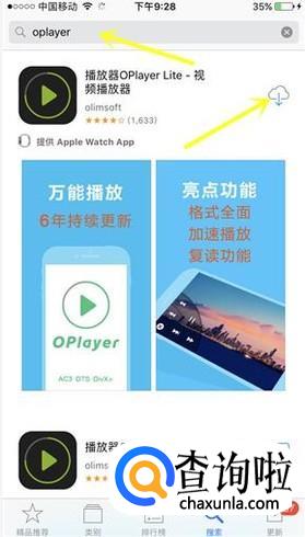 在搜索页面的搜索框中输入 Oplayer ,然后搜索。搜索到了之后点击下载并且安装