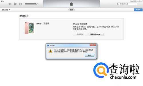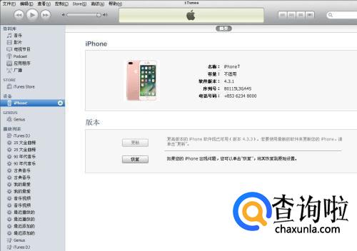 PC端打开iTunes,数据线连接iPhone7与PC。
