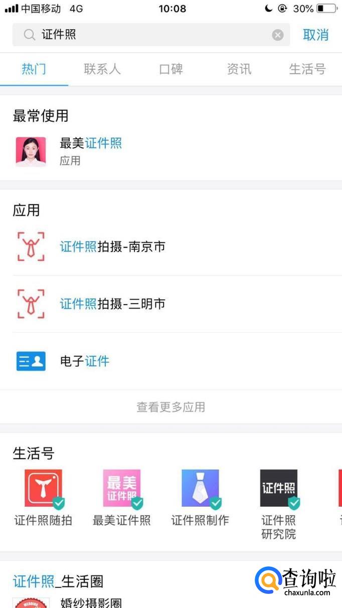 首先在支付宝中输入证件照并点击搜索,如下图所示。