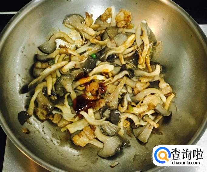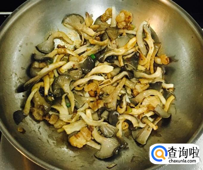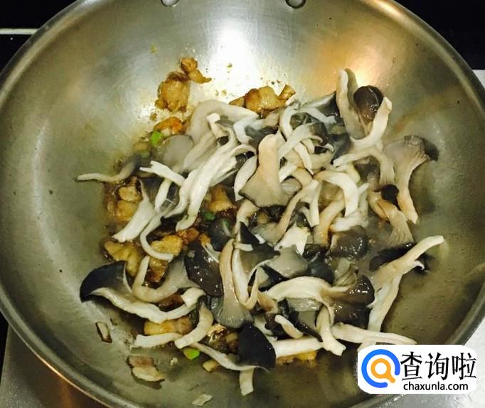 倒入平菇翻炒均匀至上色