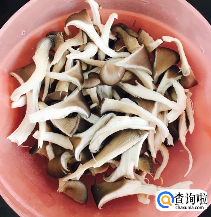 平菇剪掉根部清洗干净杂质撒成方便食用的块状
