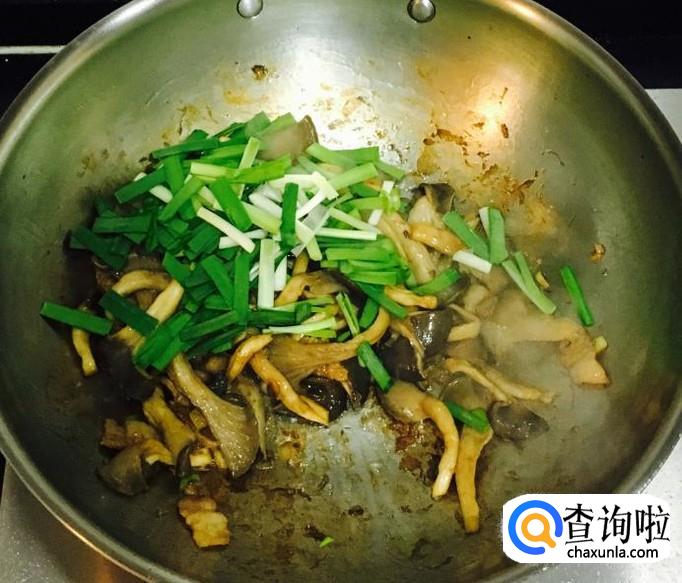 加入适量的蚝油和盐调味并翻炒均匀后关火,撒入韭菜段搅拌均匀即可