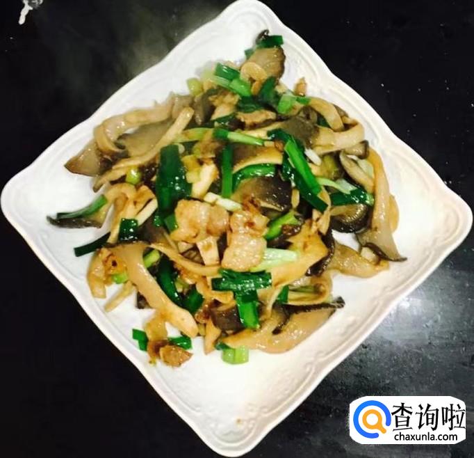 五花肉,平菇,韭菜,葱,蒜,花生油,料酒,生抽,蚝油,水等等