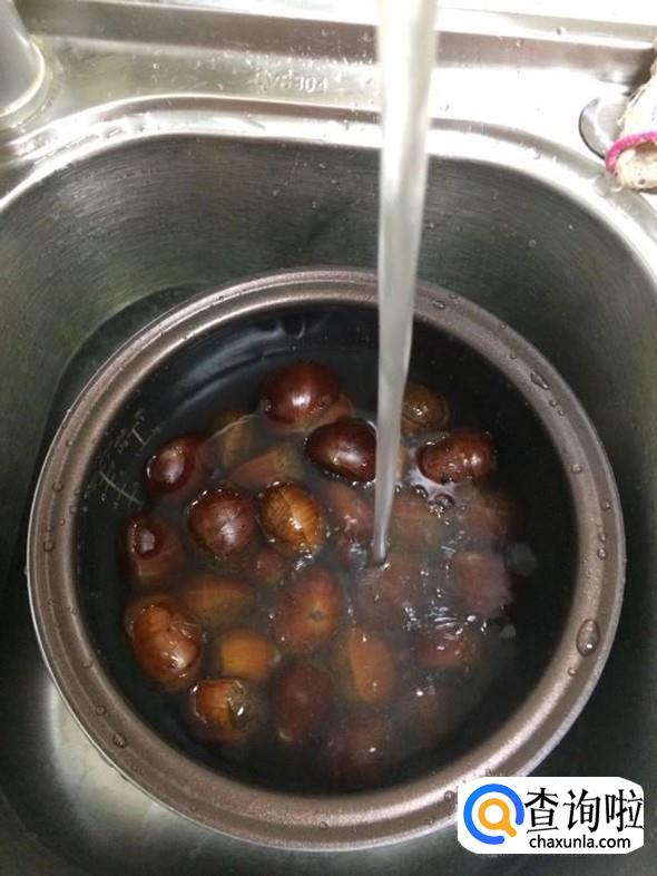 我们选用新鲜的栗子,挑拣一下用优质无虫眼的放入容器,用清水冲洗,多洗几遍去除栗子上的灰尘,洗净待用。
