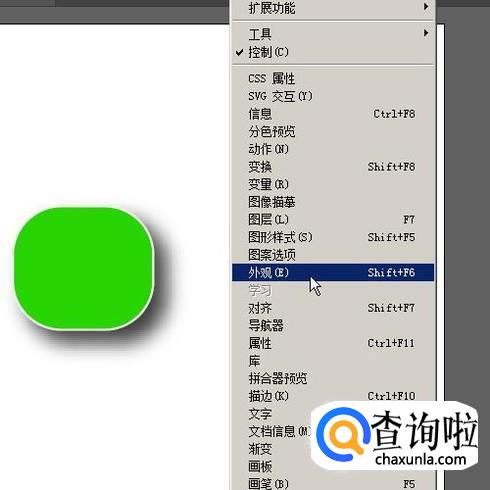 鼠标点击窗口菜单,在弹出的下拉菜单中再点:外观。