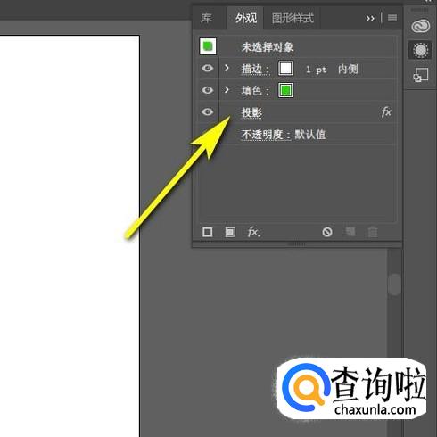 鼠标回到外观面板,再点击“投影”,选中它;然后点击右下角的删除按钮。
