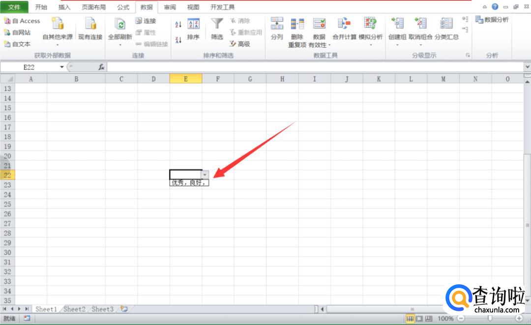 这样我们的单元格内就出现了下拉选项——【优秀】【良好】【及格】【不及格】。