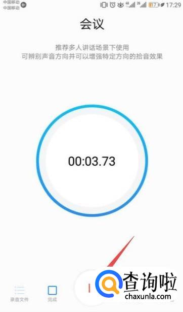 在我们录音到一定阶段的时候,我们可以点击下方中间的按钮进行暂停。