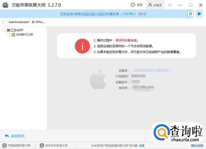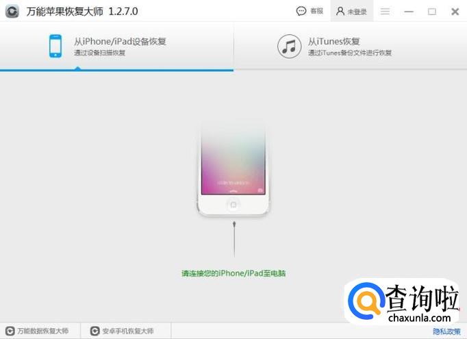 首先我们要下载苹果手机数据恢复软件,安装到电脑上,本教程使用的是万能苹果恢复大师软件,安装并运行软件。