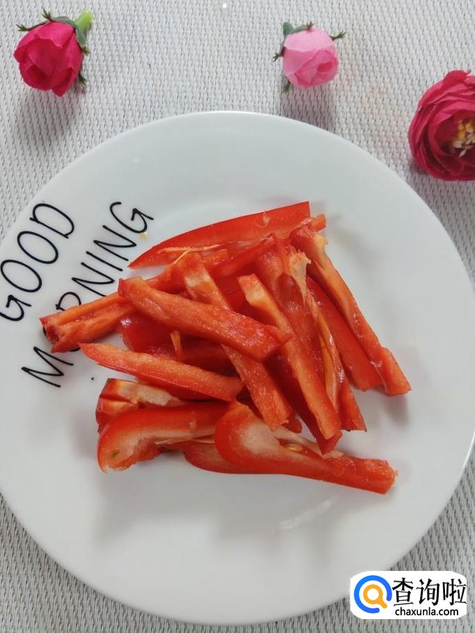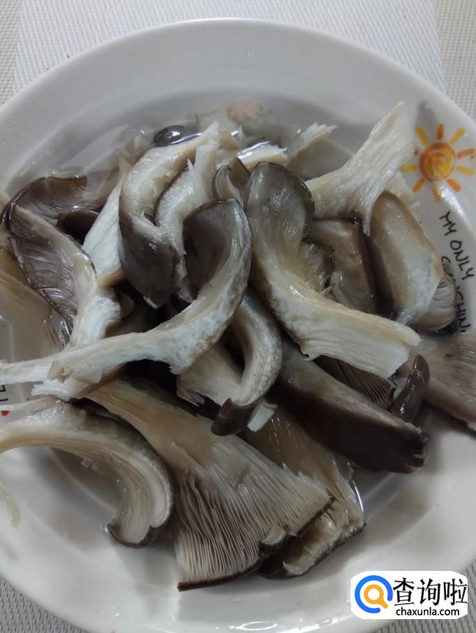 准备适量平菇,用清水洗净后,切条备用,再准备适量红椒,洗净后切成条。