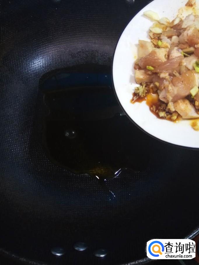 炒锅中放入适量油,油热后,将五花肉放入锅中炒香。