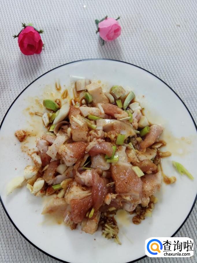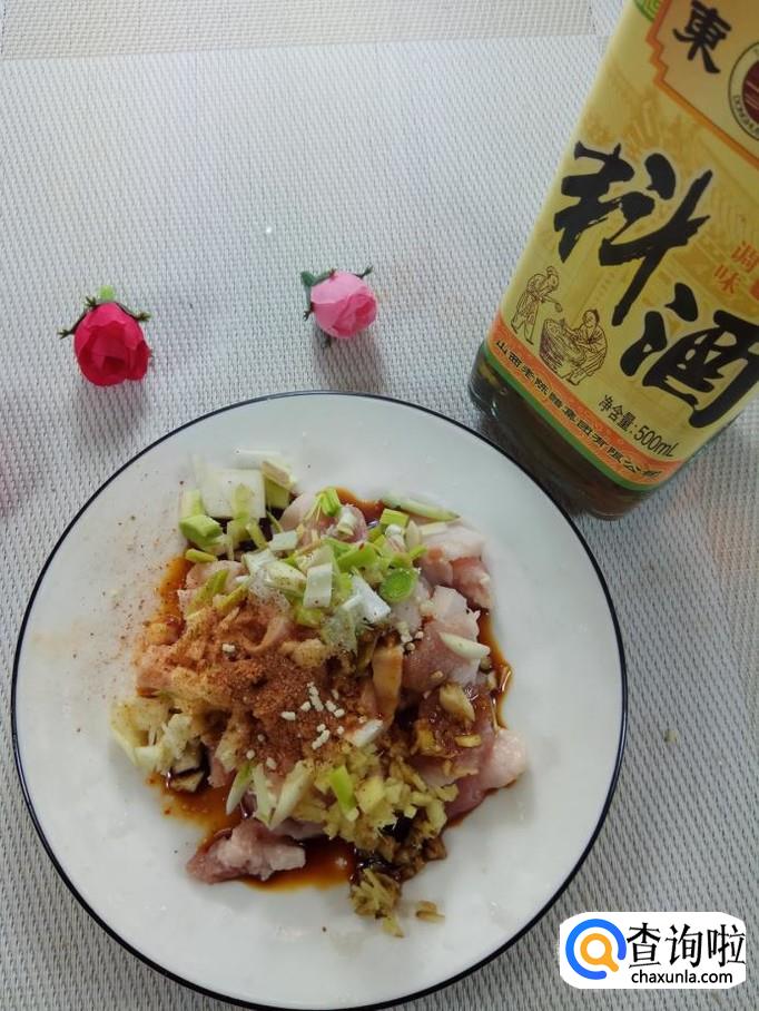 准备适量葱,姜,蒜,洗净后,切碎,放入适量盐,鸡精,五香粉,生抽,料酒搅拌均匀。腌制15分钟。
