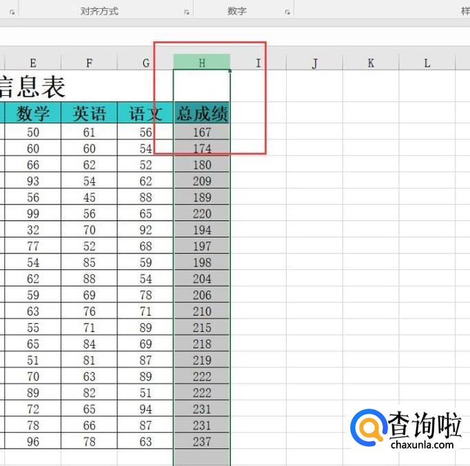 打开Excel文件,选中学生成绩那一列。