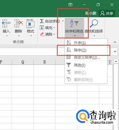 接下来,点击软件页面顶部“排序和筛选”选项,并选择“降序”选项。