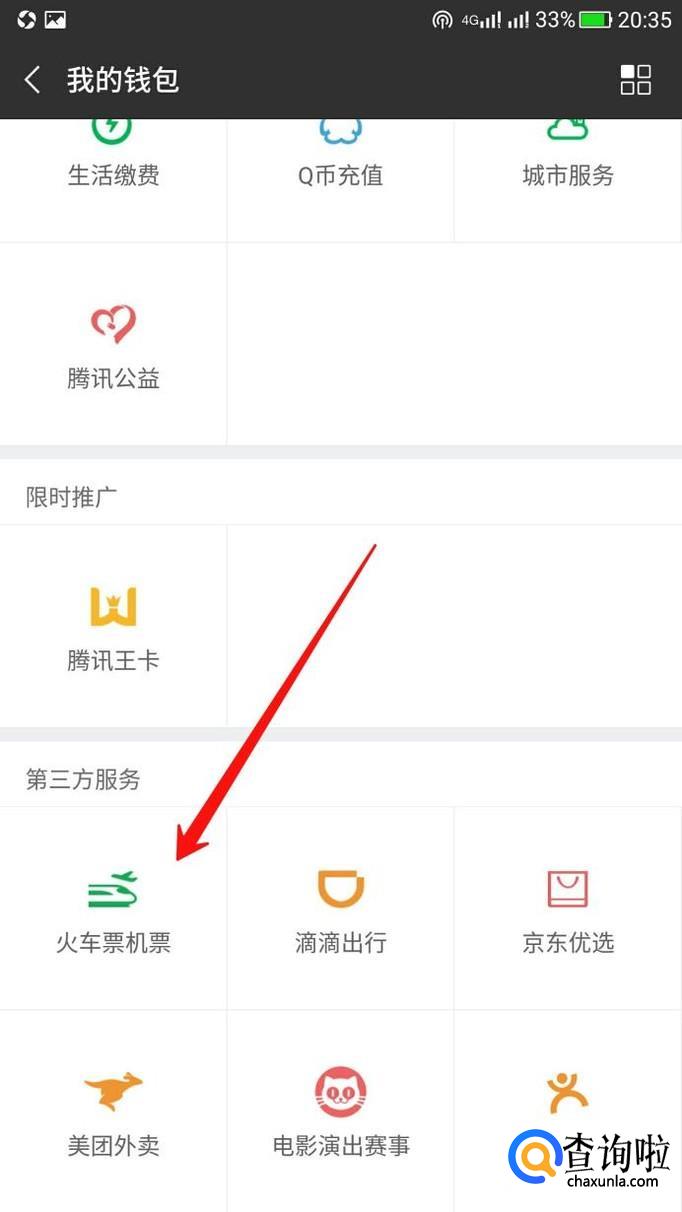 进入以后,点击火车票机票。