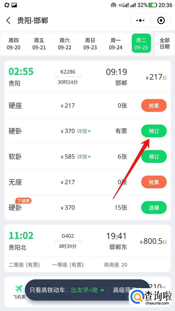 找到有票的地方,进行预订。