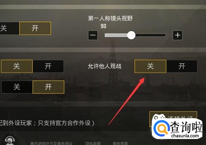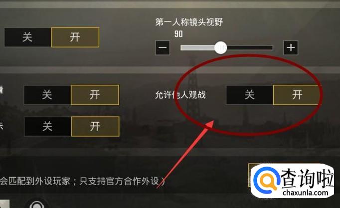 然后找到允许他人观战这个对话框,然后点击进入,如下图,进入之后是开着的