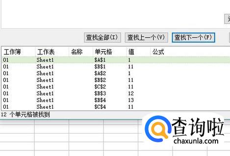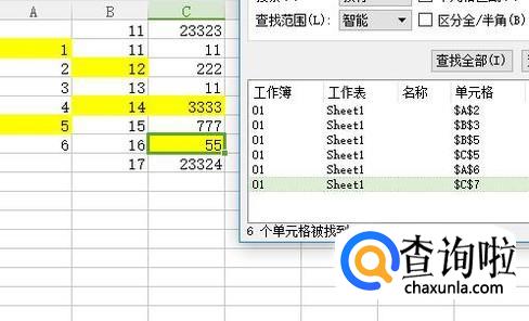 然后点击全部查找,就可以找到图中全部黄色背景的单元格了。