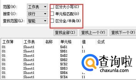 这时候我们发现所有有1的数字都被找到了,我们现在只想找数字1。我们就点击选项。