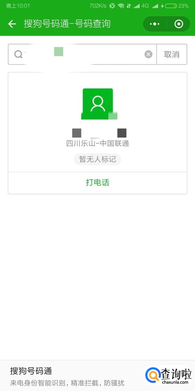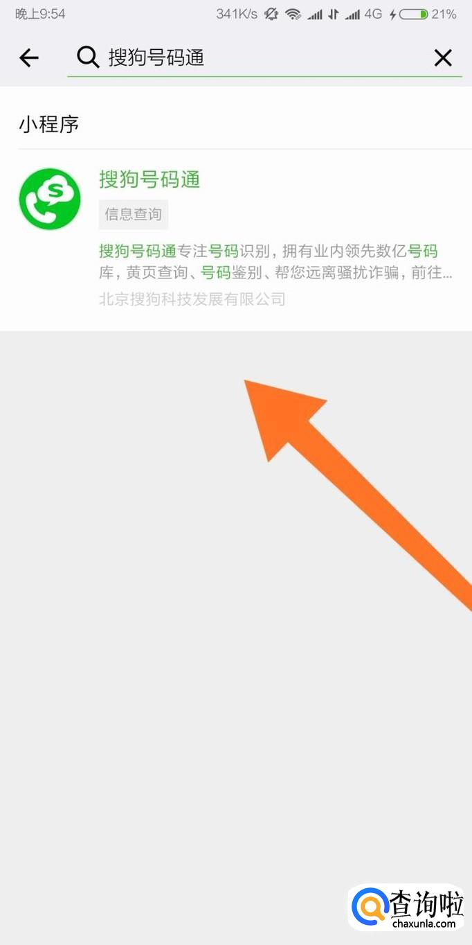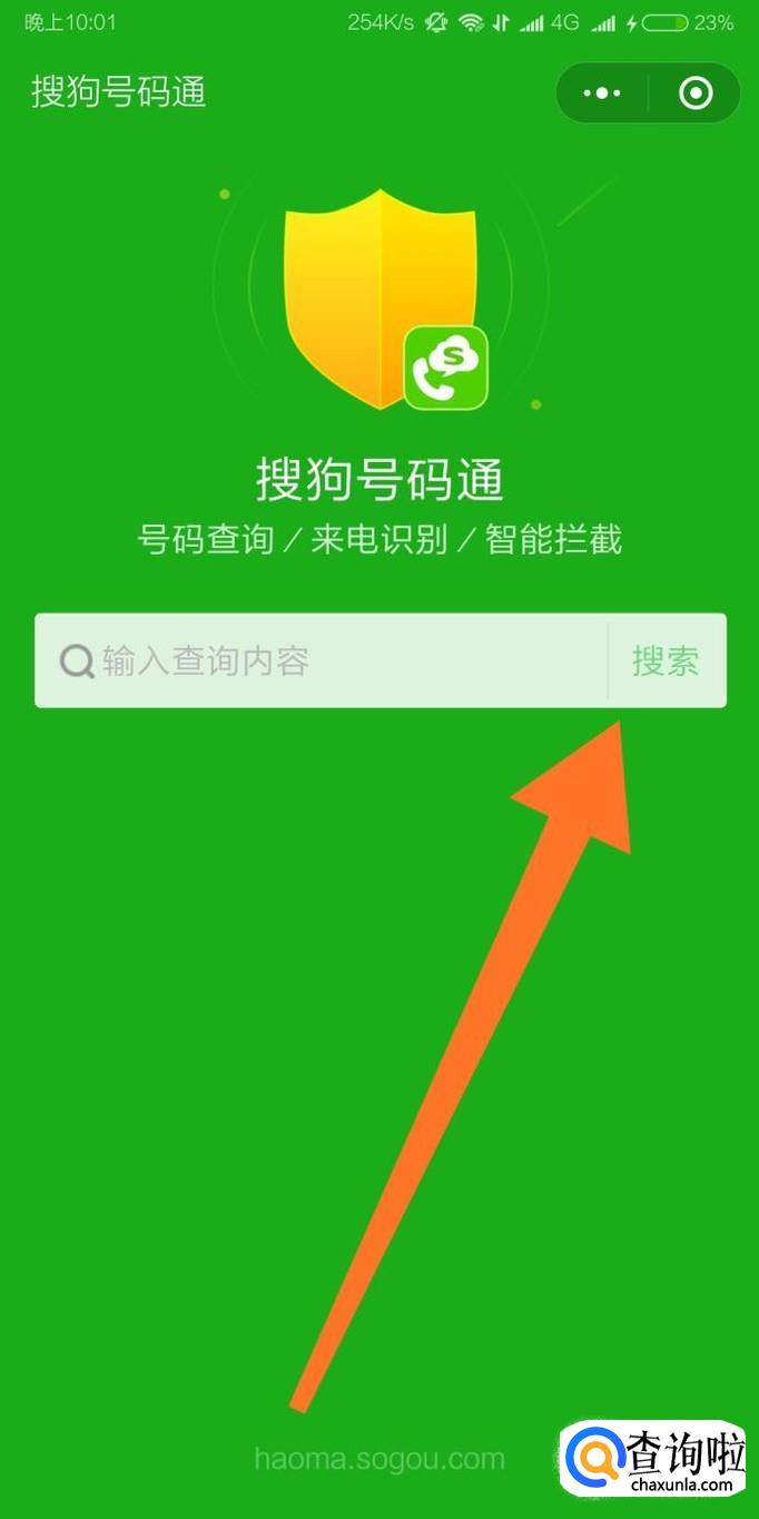 进入“搜狗号码通”小程序之后,在查询框输入需要查询的手机号码,接着点击“搜索”即可。