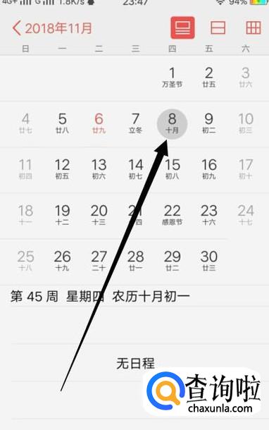 进入之后,选择设置提醒事项的日期,点击一下,如图所示。