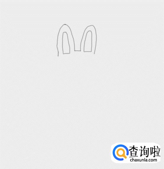 首先我们画出可妮兔的两只大大的耳朵,然后在耳朵上在画出可妮兔的内耳结构,如图所示:
