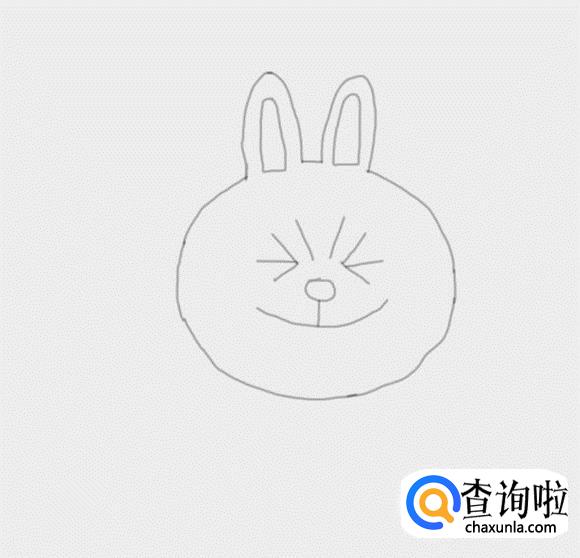 在脑袋上面画出可妮兔的眼睛,在眼睛下面画出鼻子和嘴巴,如图所示: