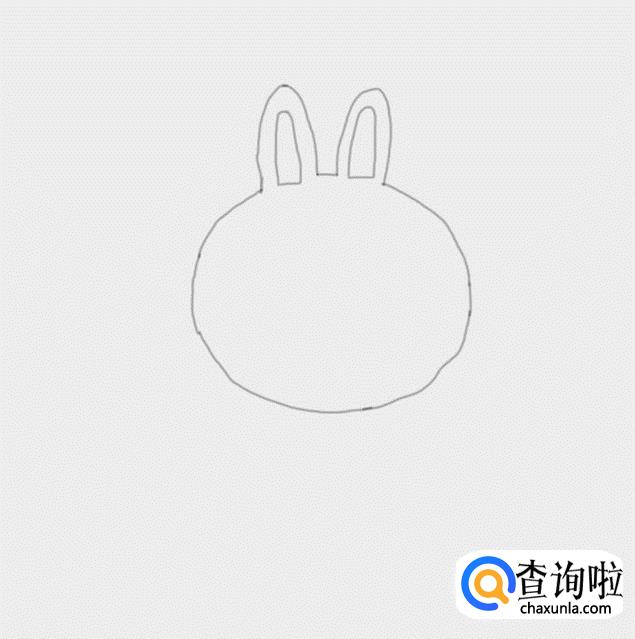 在耳朵的基础上我们再画出可妮兔的圆圆的大脑袋,如图所示:
