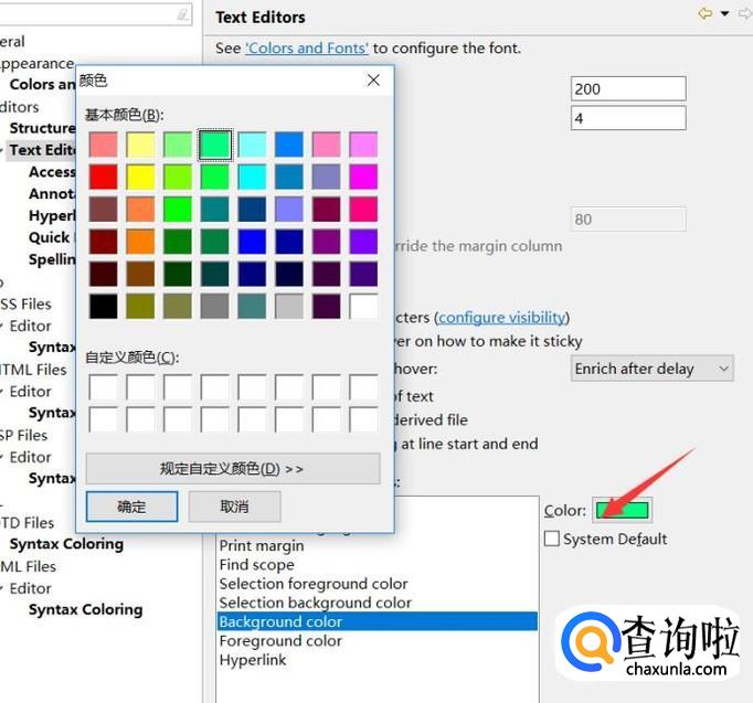 在输入框里输入 text e,找到如下图所示的编辑页面,选中background color,点击绿色色块,调出颜色选择器