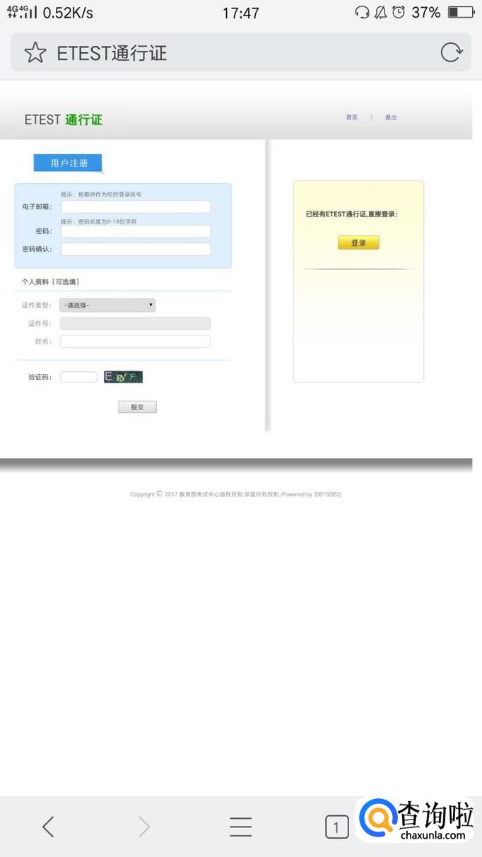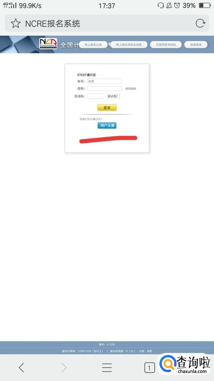 接着,就会进入如下界面,已经注册过的可以直接输入账号和密码登录,没有注册的就需要先注册。值得注意的是,一般在考试前夕,都需要下载准考证,所以注册的账号和密码一定要记下来,方便以后能找到。