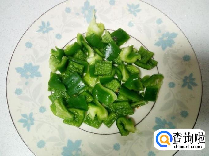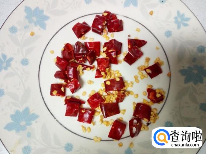 红干椒用水清洗干净,控干水分,切成小段。青椒用水清洗干净,控干水分,切成小块。