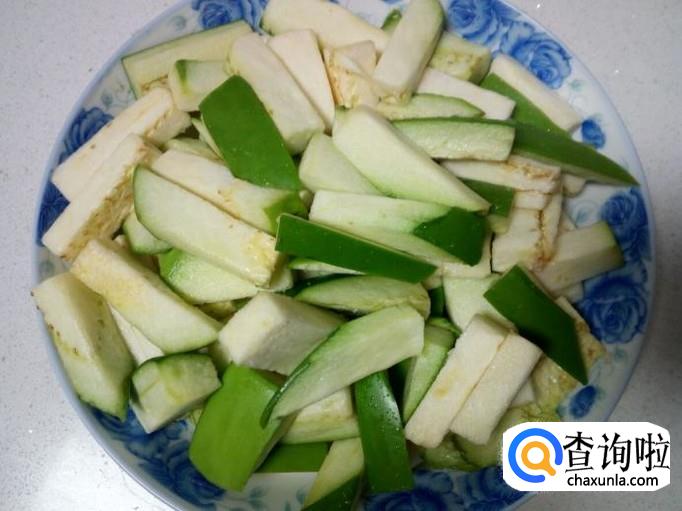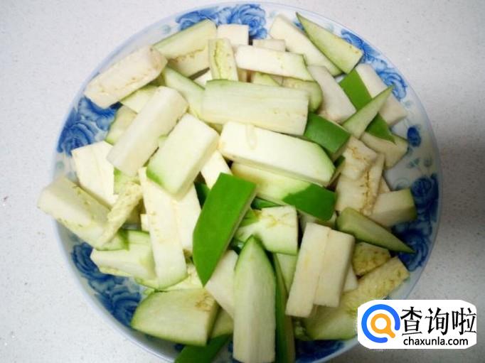 茄子清洗干净,控干水分,切成粗条。