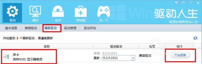 一般电脑上面的声卡驱动出现了问题都和驱动有关,你也可以驱动精灵安装,它可以帮你检测出电脑存在的问题并加以解决,利用它对电脑进行检测,对检测到的驱动进行升级。