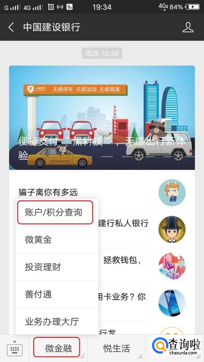进入公众号,点击下方“微金融”,“账户积分查询”。