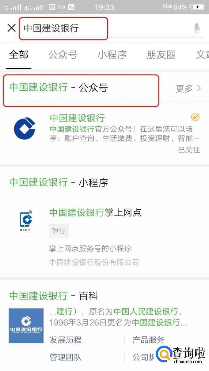 首先,我们打开微信,搜索“中国建设银行”公众号,并关注。