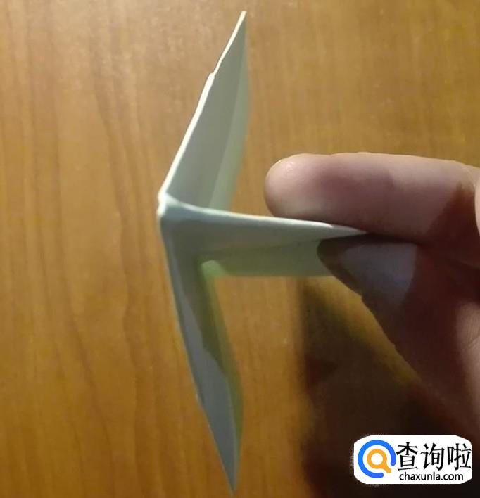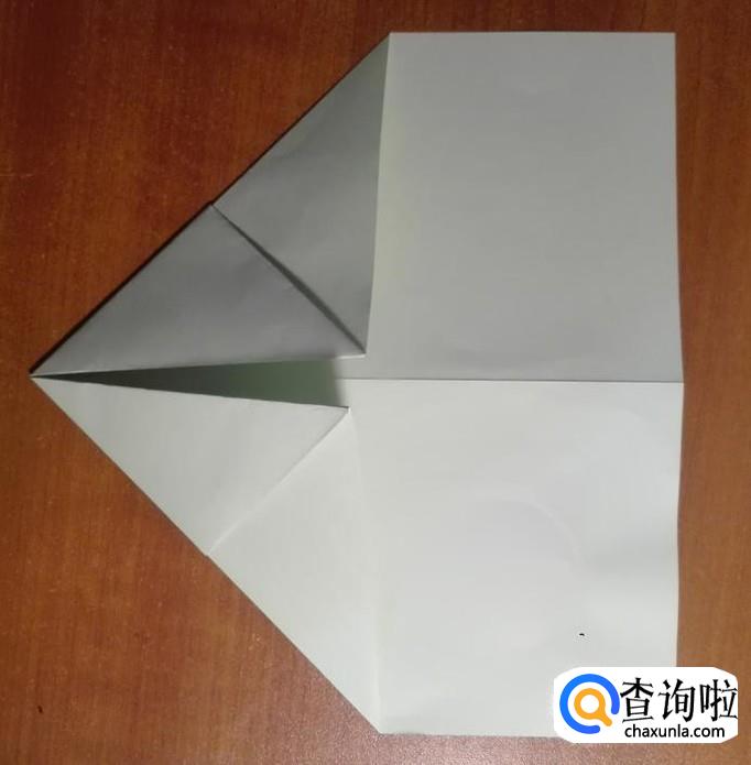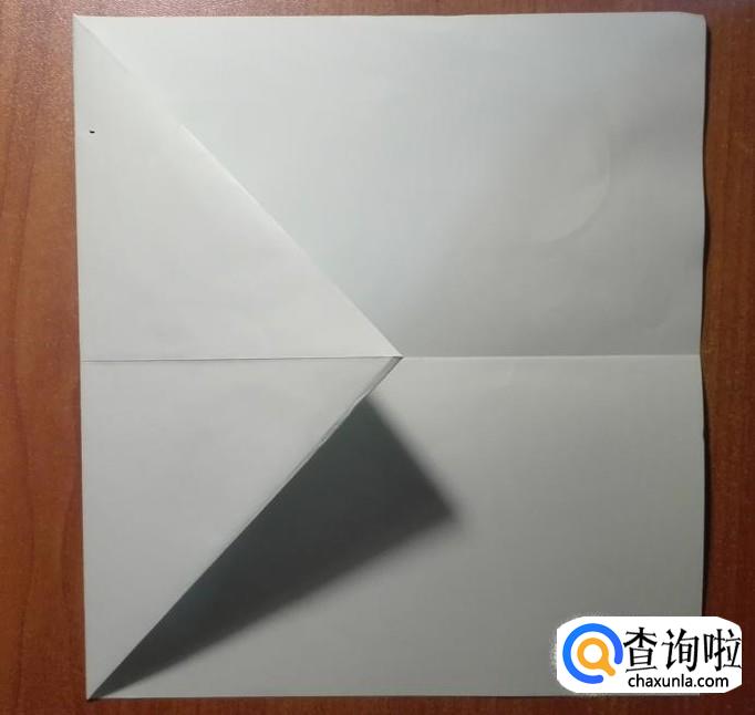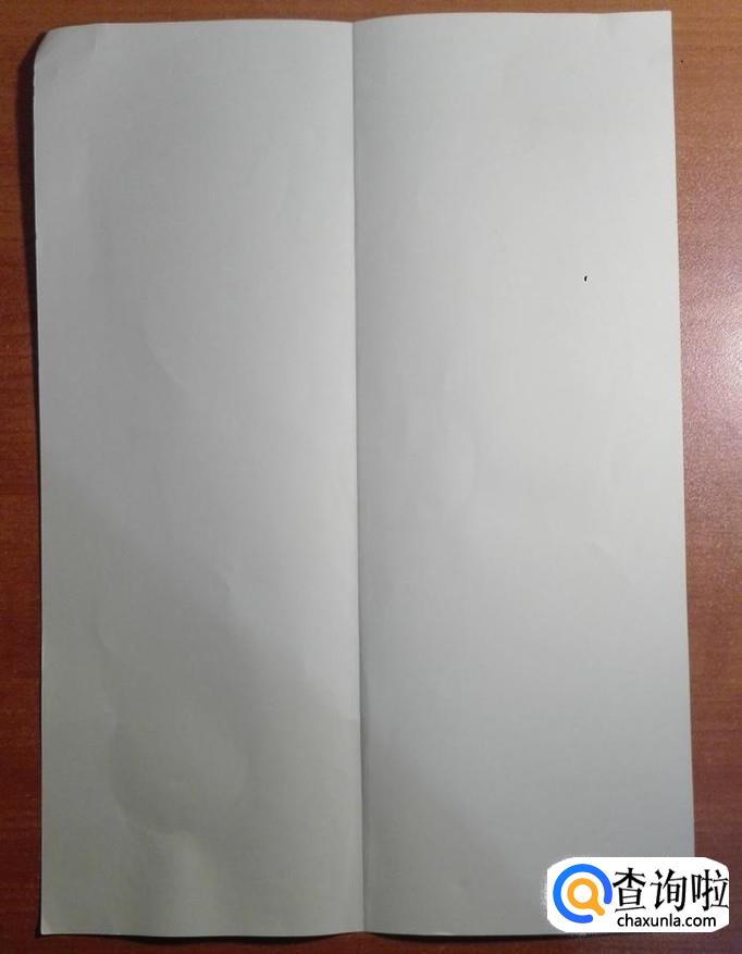 取出一张长方形的纸,取短边的中点对折,然后展开(如图片1)。短边一侧的两个直角向中线位置对折(如图2),然后向下对折(如图3)。