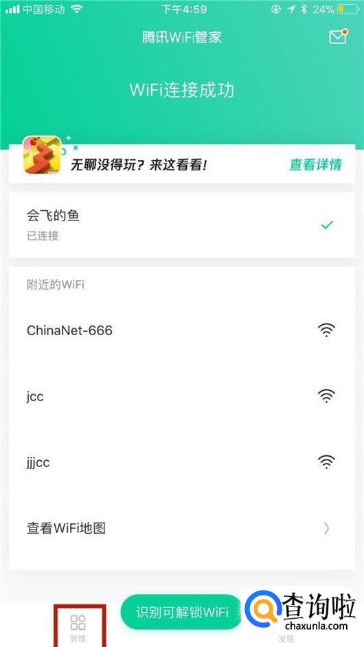 首先在我们的手机桌面上找到WiFi管家并点击它,如下图所示。