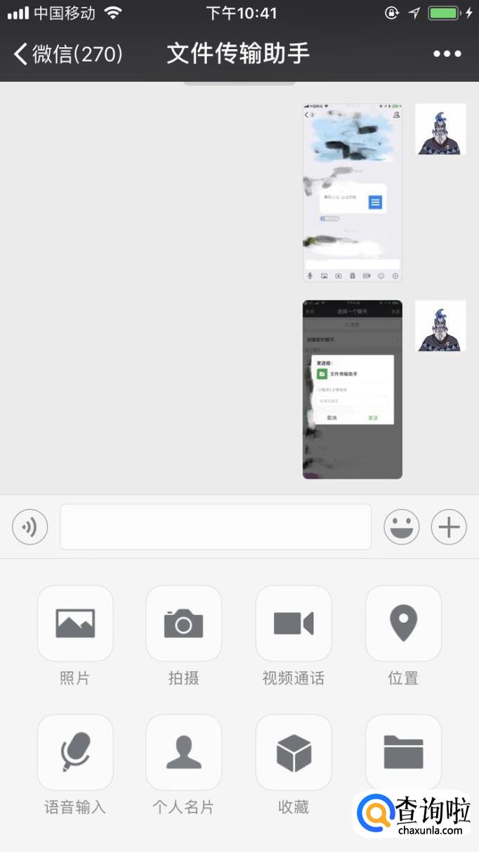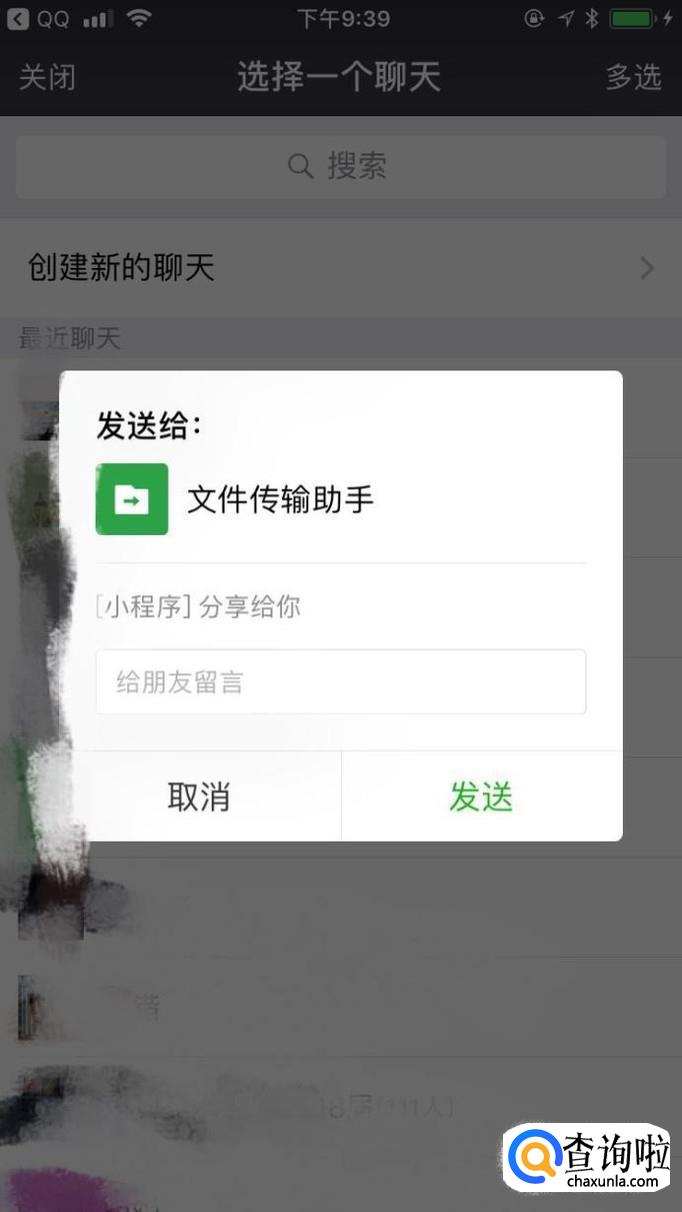 在传送文件时,可选择微信中的文件传输助手。