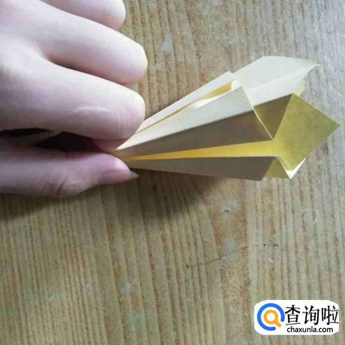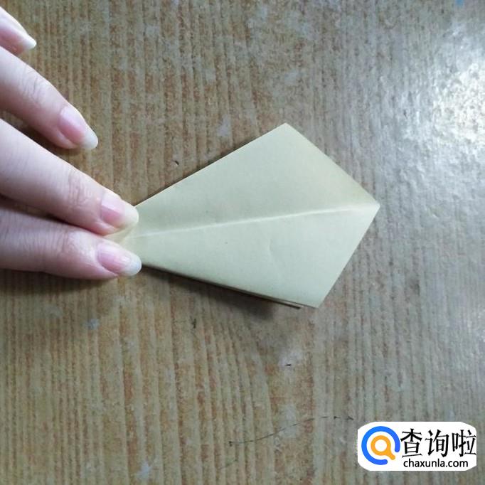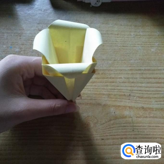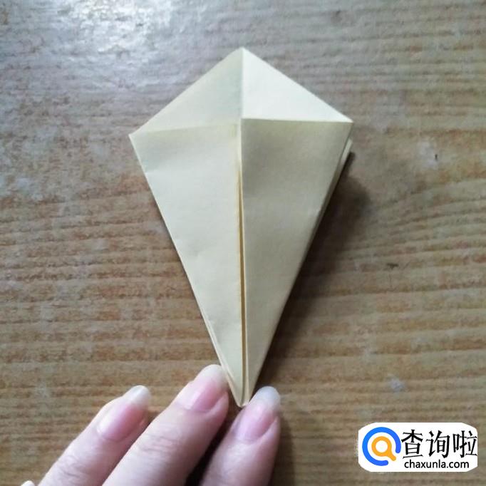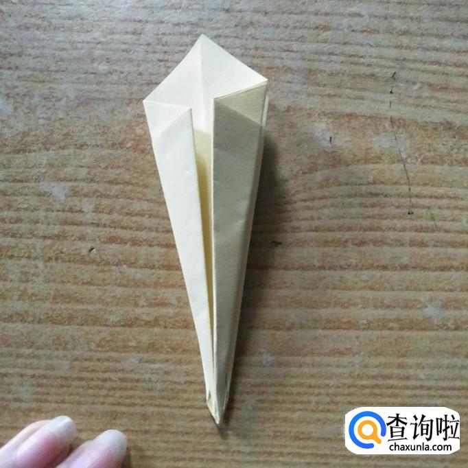 然后轻轻的用手指卷最上边的三角形部分,使其弯曲,呈花瓣状。