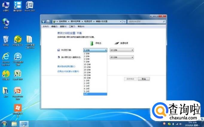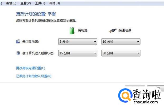 然后会看到“关闭显示器”和“使计算机进入睡眠状态”选项,笔记本电脑还会分为“用电池”和“接通电源”两个设置。