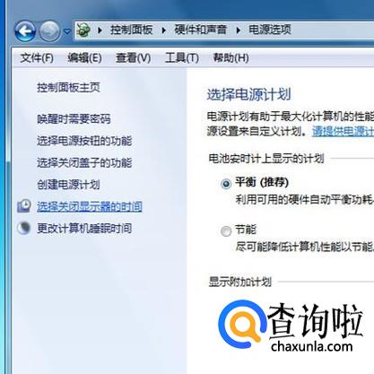 在电源选项界面左边点击“选择关闭显示器的时间”。