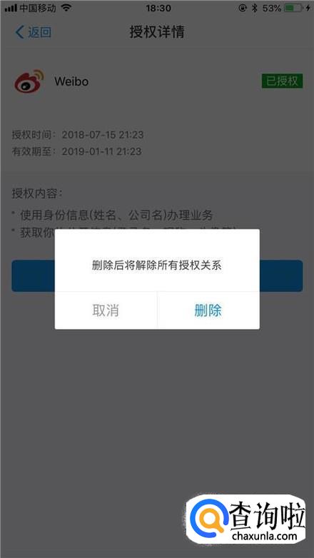 接着点击删除授权,如下图所示。