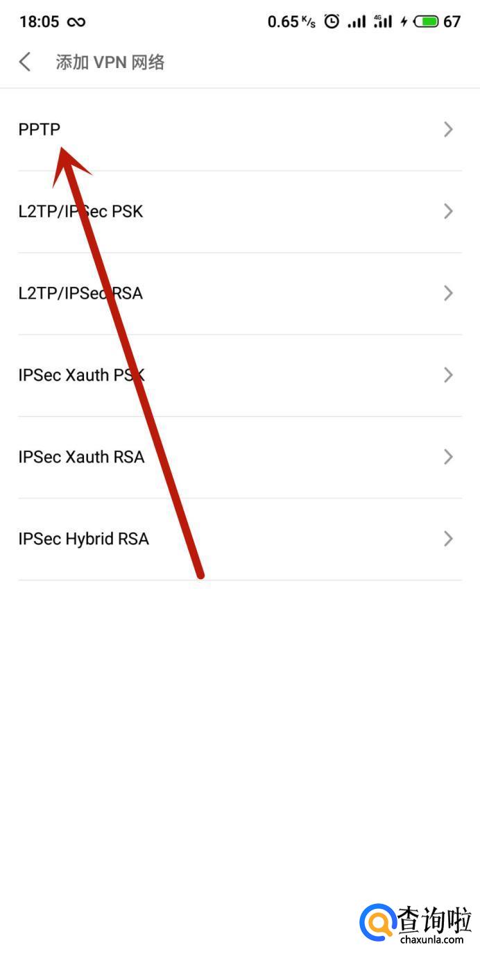 进入之后,选择要设置的VPN类型,以“PPTP”为例,如图所示。
