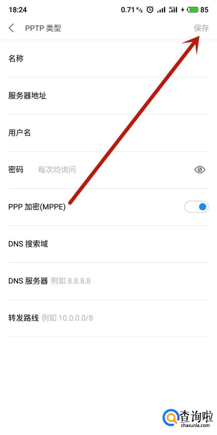 进入之后,设置vpn相关的信息,点击“保存”,如图所示。